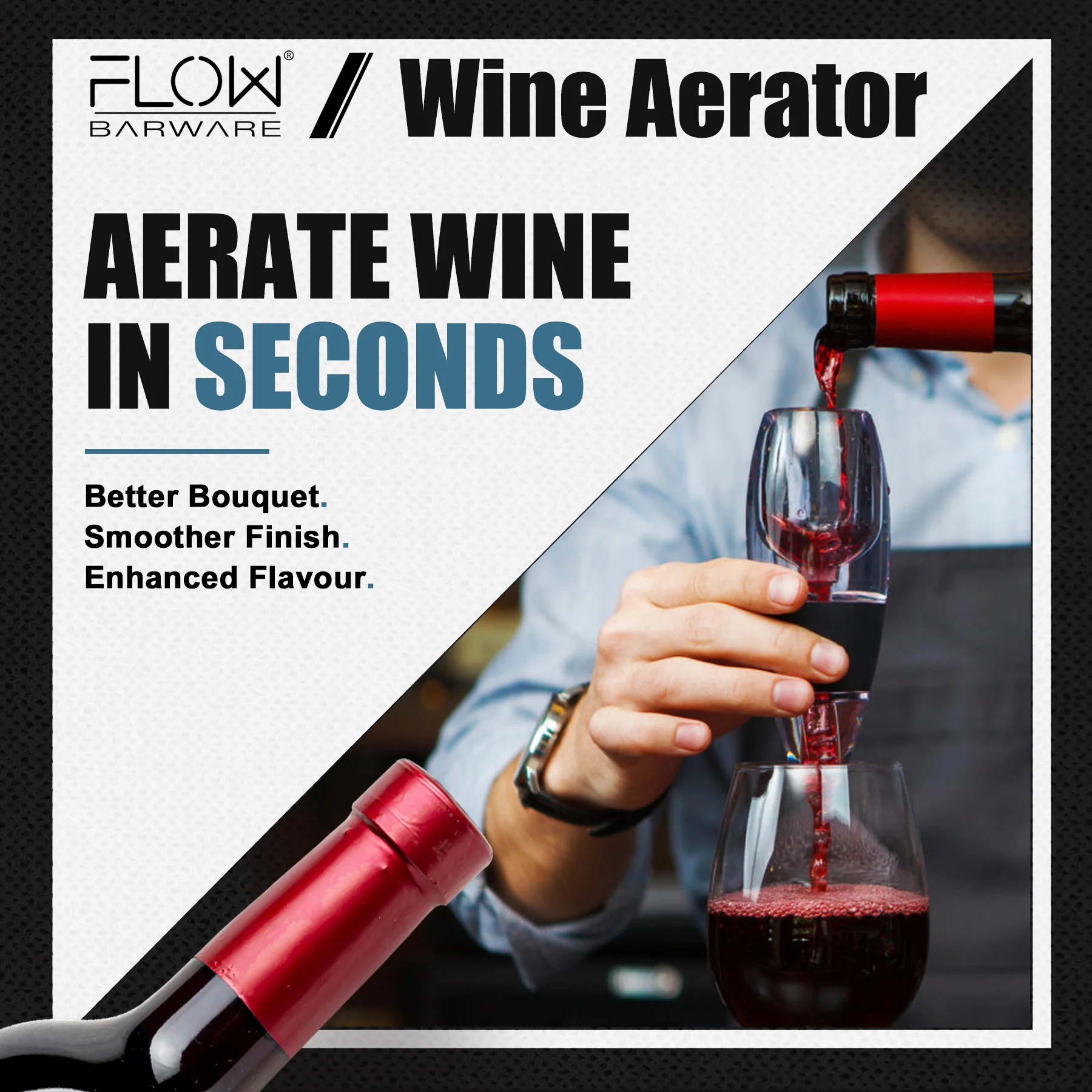 ENJOY GREAT TASTING WINE INSTANTLY - With the FLOW Barware Wine Aerating Pourer set there is no need to wait an hour for your wine to breathe like with a traditional wine decanter. Simply open the bottle and pour the wine through the wine aerator. As the wine passes through the pourer it instantly oxygenates the wine by sucking in air through the chambers and mixing it with the wine bringing out the complex flavours and aromas making any wine taste better.