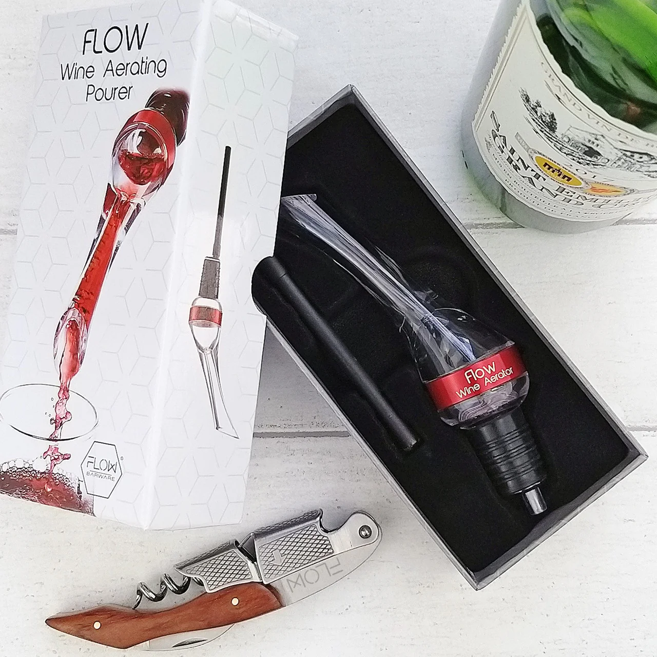 ENJOY GREAT TASTING WINE INSTANTLY With The FLOW Wine Aerating Pourer set there is no need to wait an hour for your wine to breathe like with a traditional wine decanter. Simply open the bottle attach the wine aerator and gently pour. As the red wine passes through the pourer it instantly oxygenates the wine bringing out the complex flavours and aromas making any wine taste better.